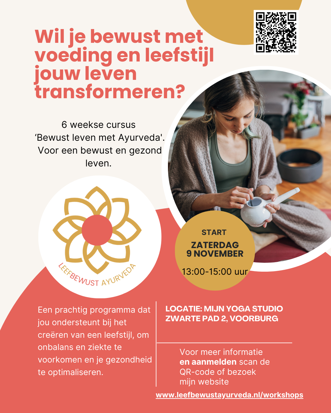 Binnenkort kun je deelnemen aan een prachtige 6 weekse cursus Bewust Leven met Ayurveda.